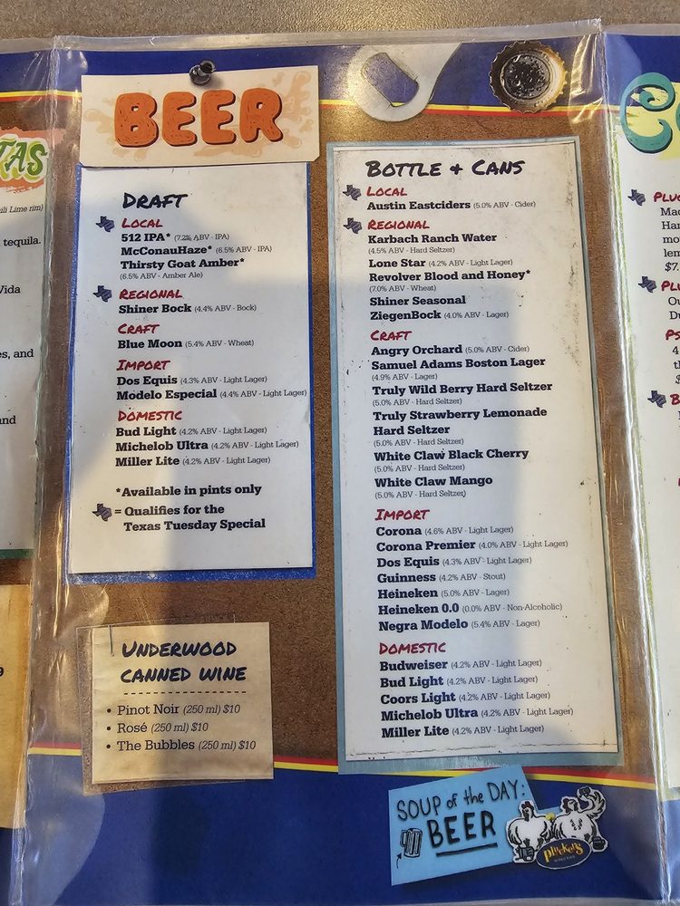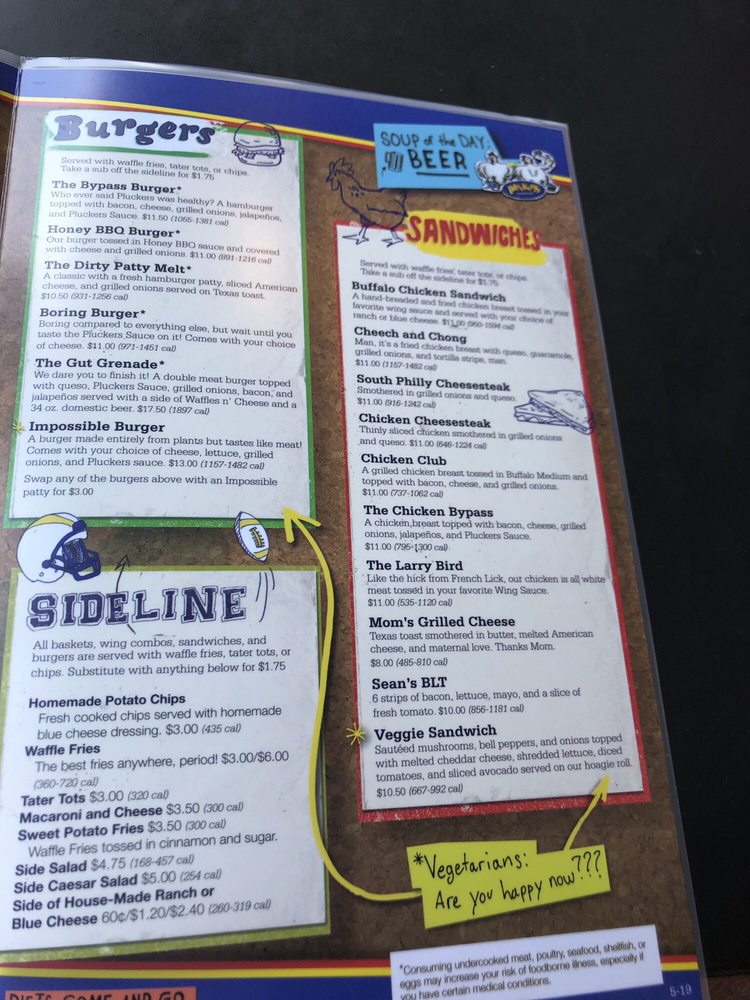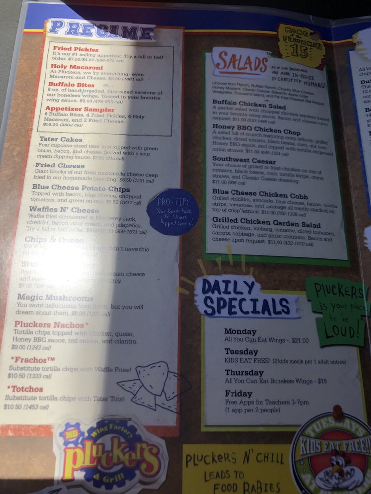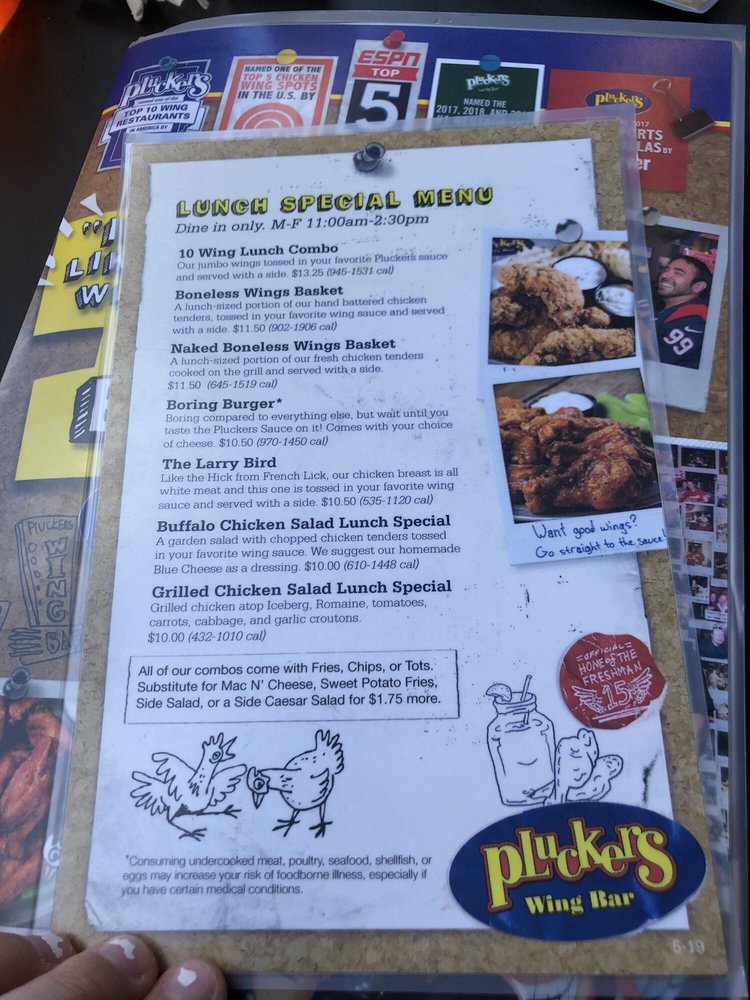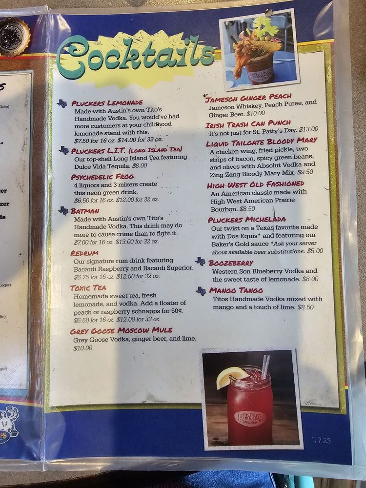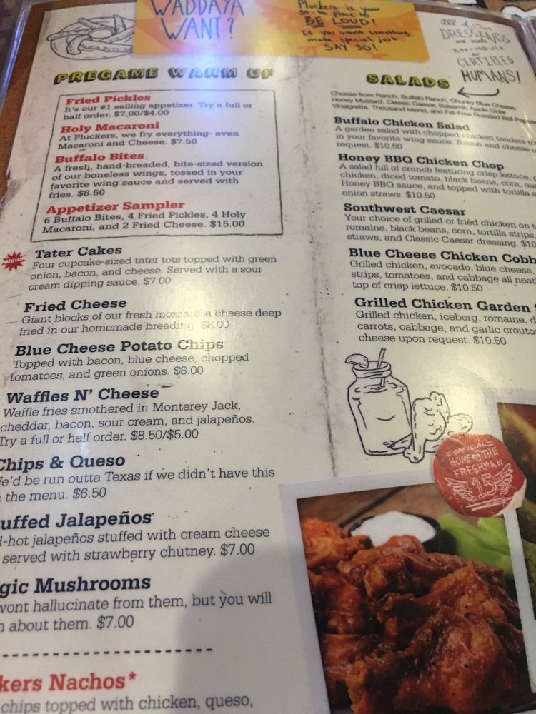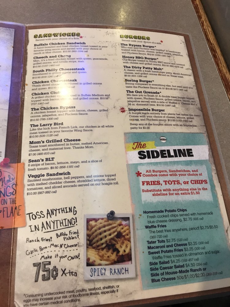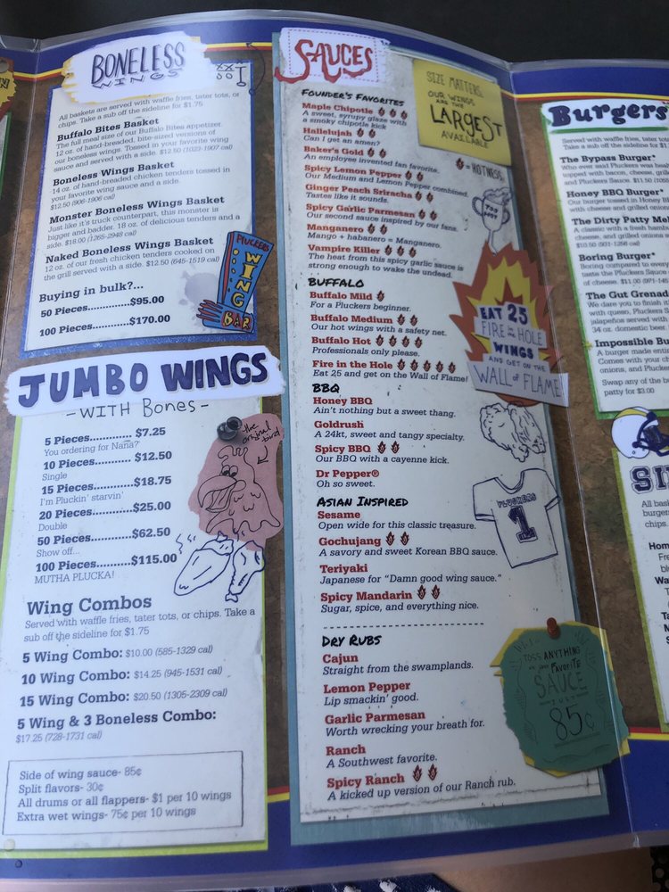 Pluckers Wing Bar TX Menu